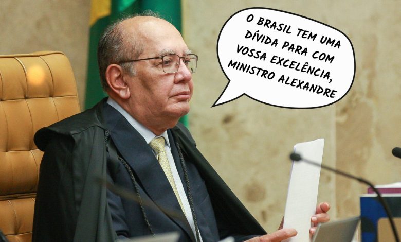 “O Brasil tem uma dívida para com vossa excelência, Ministro Alexandre” — Gilmar Mendes, ministro do Supremo (STF-MT), parabenizando o colega Alexandre Barci de Moraes pelos nove anos de STF. Alguém tem o contato de um agiota de confiança? Prefiro rolar essa dívida com alguém mais razoável.